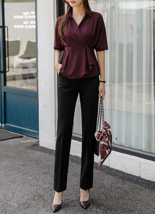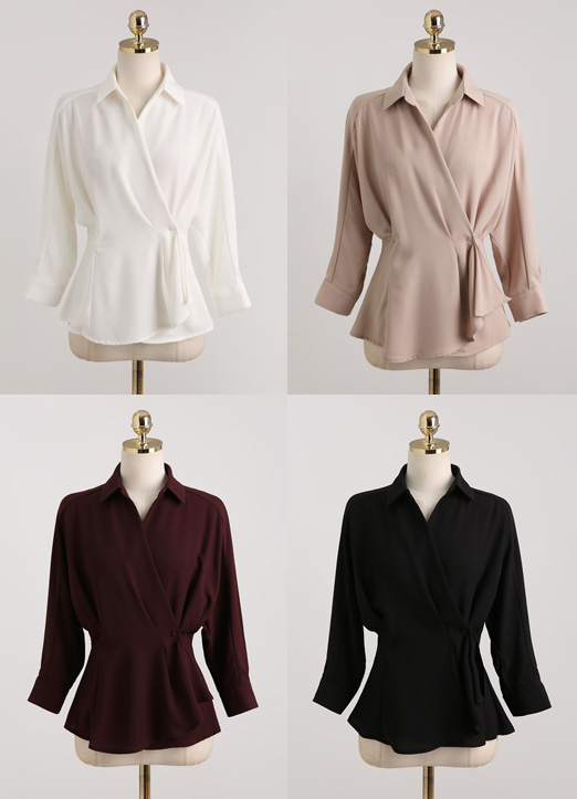ウエストタック、ボタンディテールによって、くびれを強調した女性らしいシルエットが完成するブラウス。ラップデザインによって首元すっきり、タック、ボタン、フレアデザインによりスリムなウエストを演出し、パフスリーブでは二の腕をしっかりカバーできちゃいます◎落ち着いた、高級感のあるカラーで揃えており、シンプルにコーディネートしても、洗練された大人コーディネートが完成!デイリー、オフィス、格式ばった席で大活躍間違いなしのイチ推しアイテムです♬